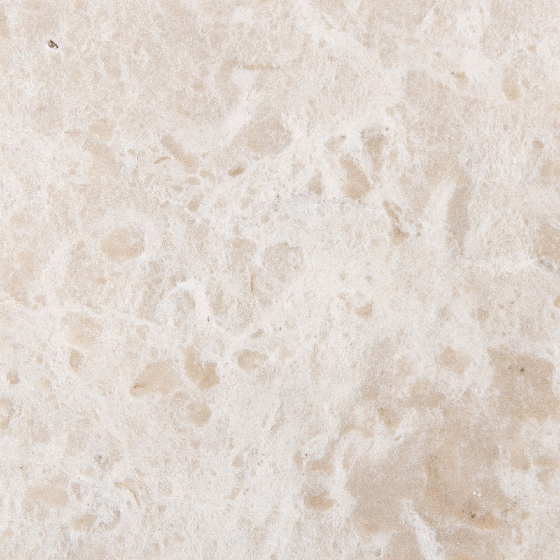 Close-up of the Quad Shower Shelf’s light beige stone surface, showcasing a rough, uneven texture with natural patterns, small holes, and subtle color variations—perfect for a stylish bathroom shelf.