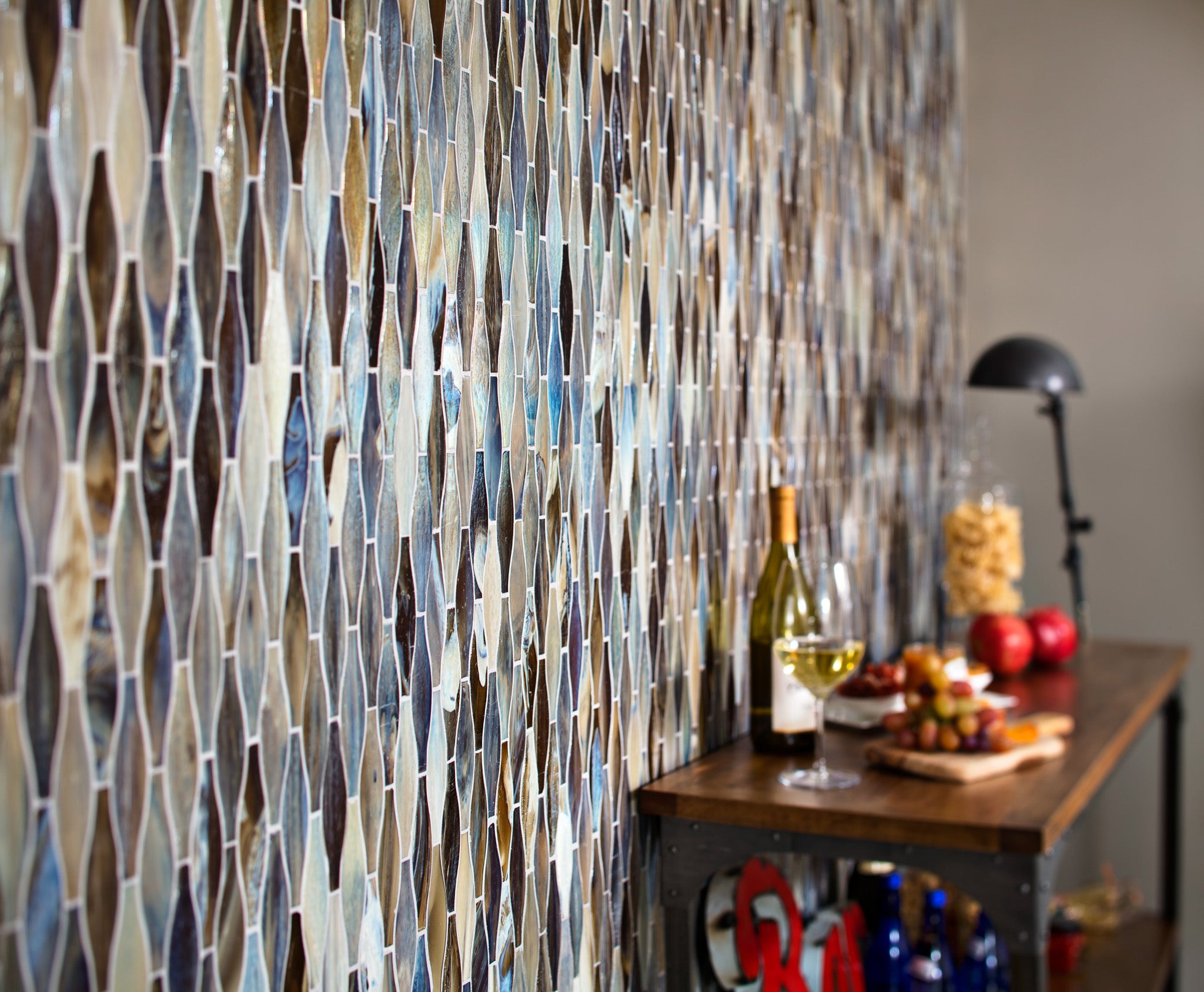 Agate Taiko Mosaic Glass Tile is inspired from the ancient Japanese art of paper folding with the introduction of Origami glass tile. Delicate angles and subtle geometry emulate the techniques and visuals seen in the iconic art form and recreate them in three-dimensional glass mosaics.