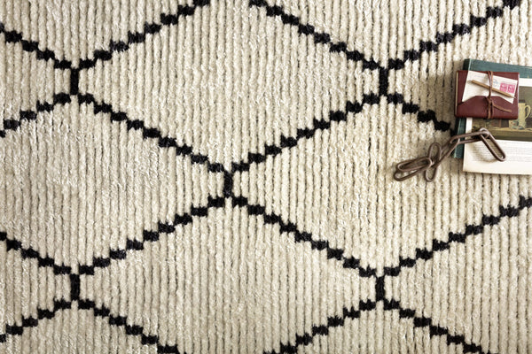 Inspired by the classic Moroccan rug, the Alice Collection is a product of collaboration between Chris Loves Julia x Loloi. Durable, graphic, and soft underfoot, Alice features a high-low texture with warm earthy colors. Power-loomed in Turkey of 100% polyester pile, each rug is finished by a subtle fringe.
