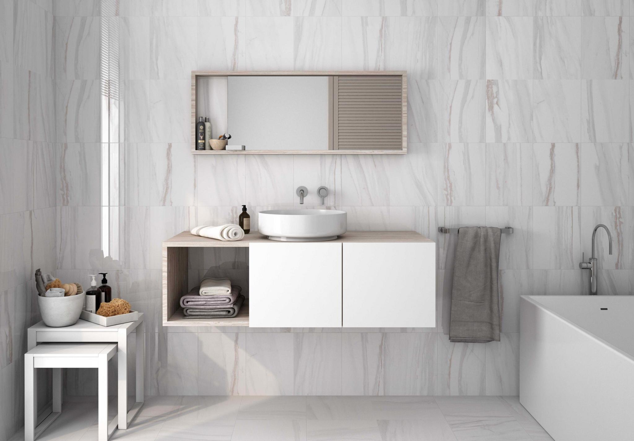 Luxurious and elegant, the Angel Falls collection offers the look of marble with the durability of porcelain. With striking veining and glossy finish, it's the perfect option for a timeless design. This collection offers a variety of sizes and finishes, for floor and wall application.