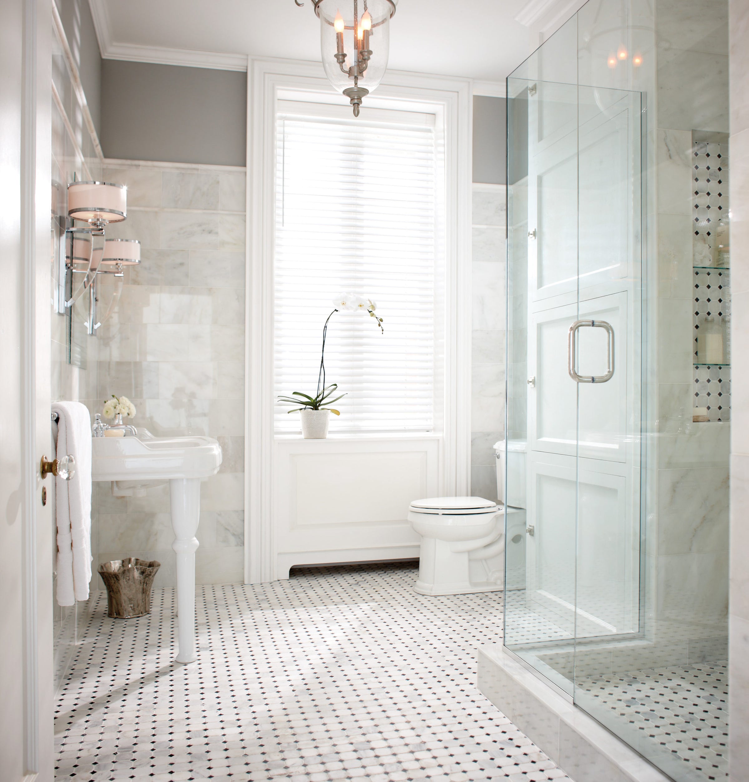 Arabescata Carrara Select is a beautiful marble collection featuring natural stone tiles in shades of white and gray. It's available in a wide range of sizes and mosaics in either honed or polished finishes.