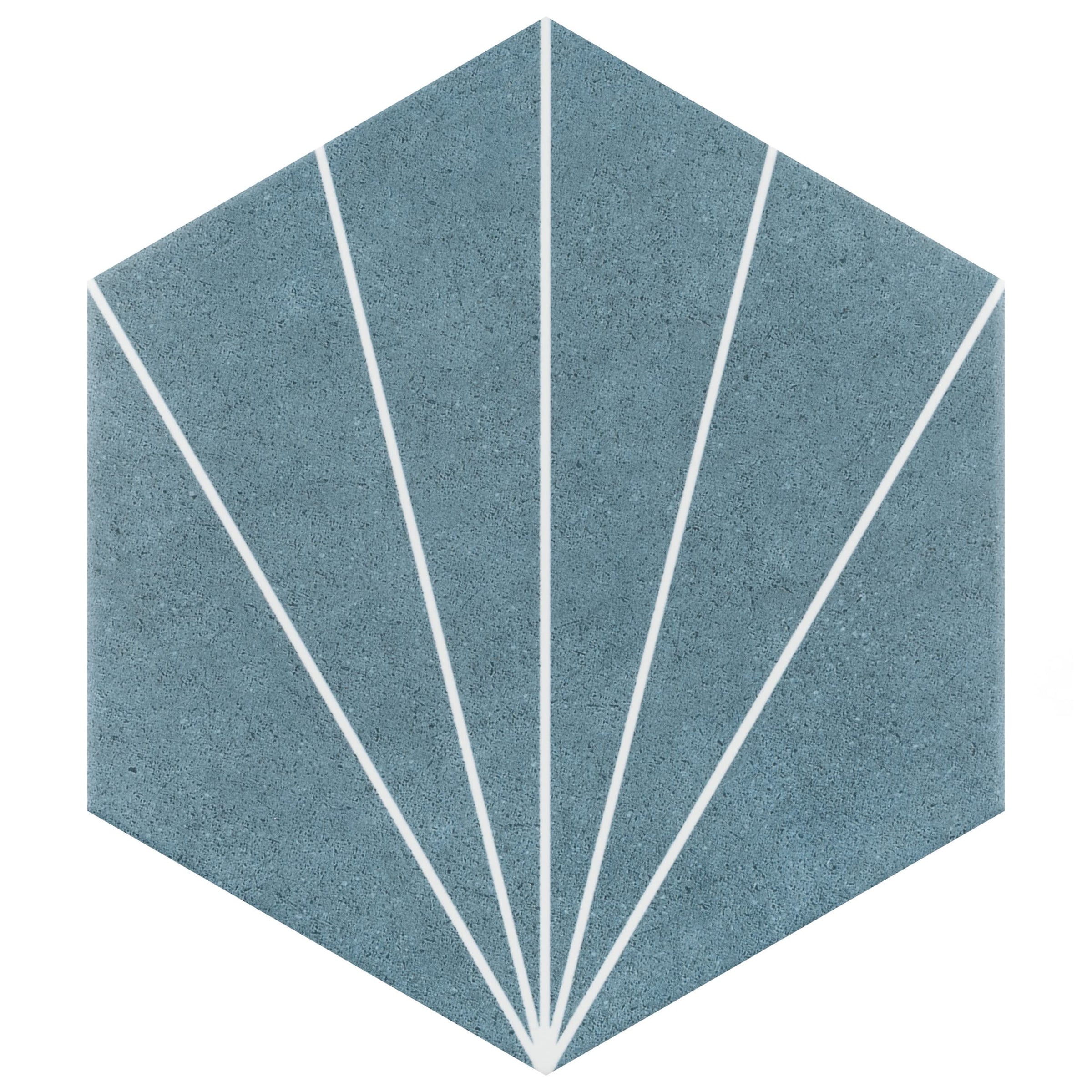 Blending subtle and clean lines, our Aster Hex 8-5/8" x 9-7/8" Porcelain Floor and Wall Tile offers geometric minimalism reminiscent of mid-century modern design. This hexagon shaped tile transforms any space into a work of art through linear starburst patterns that when laid out, intertwine to create captivating designs. Set on a smooth, satin base glaze, this porcelain tile features lines that extend across the surface. To add further contrast and dimension to the design, this floor and wall tile features speckled pattern variations in color tones. This trendsetting display of geometric pattern is visually appealing and versatile, and can be laid out in various different patterns to create a one-of-a-kind installation. Its impervious and frost-resistant features make this an ideal choice for indoor and outdoor installations, including backsplashes, kitchens, bathrooms, showers, entryways and patios.