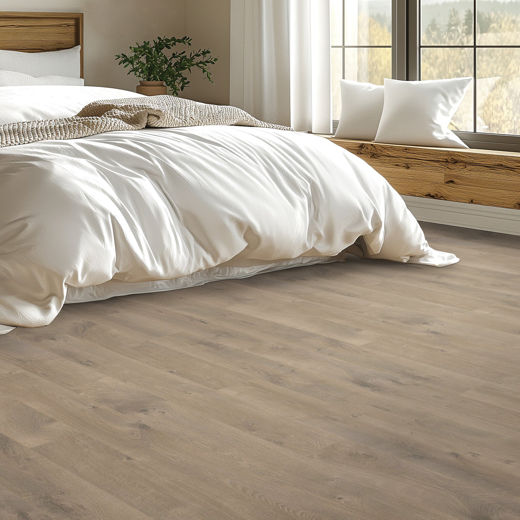 Birkhall Landing 7.5" Waterproof Laminate combines elegant design with practical durability, perfect for households with pets. Its waterproof surface ensures easy cleaning and resistance to spills, while the wide planks provide a luxurious, spacious feel. This flooring offers a refined look without compromising on toughness, making it an ideal choice for sophisticated homes that demand both style and functionality.