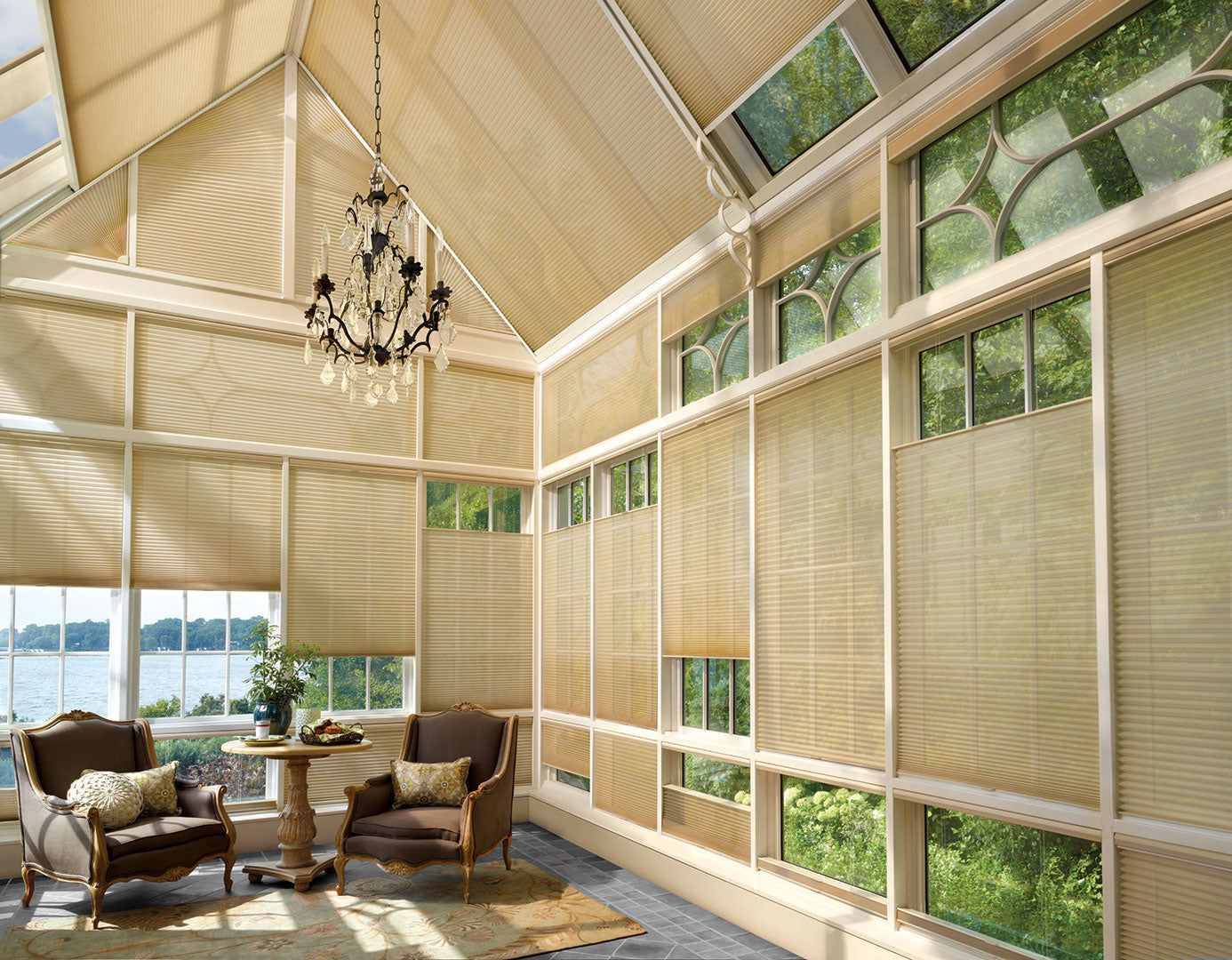 Energy-efficiency, meet manageable light control. With a seamless, integrated design, Duette Duolite fuses two different fabrics together into one shade, allowing you to control the temperature in each room, while also beautifully filtering light during the day and providing darkness when you sleep. With PowerView Motorization, your window treatments adjust themselves automatically, creating the perfect room ambiance morning, noon and night. Just program PowerView to move your window treatments to the exact position you want and then control and schedule them using the intuitive PowerView App. You can also operate your PowerView shades using the PowerView Pebble® Control. Voice activate your PowerView shades with Amazon Alexa, Siri on your Apple devices, or the Google Assistant.