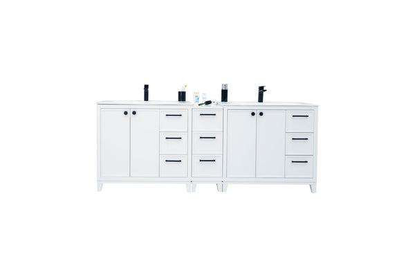 Elevate your bathroom with the Frame 84" Vanity, a sophisticated blend of contemporary design and stylish functionality. Its sleek lines and spacious countertop provide an elegant centerpiece that enhances any modern space. Crafted to offer both beauty and practicality, this vanity transforms your daily routine into a refined experience.