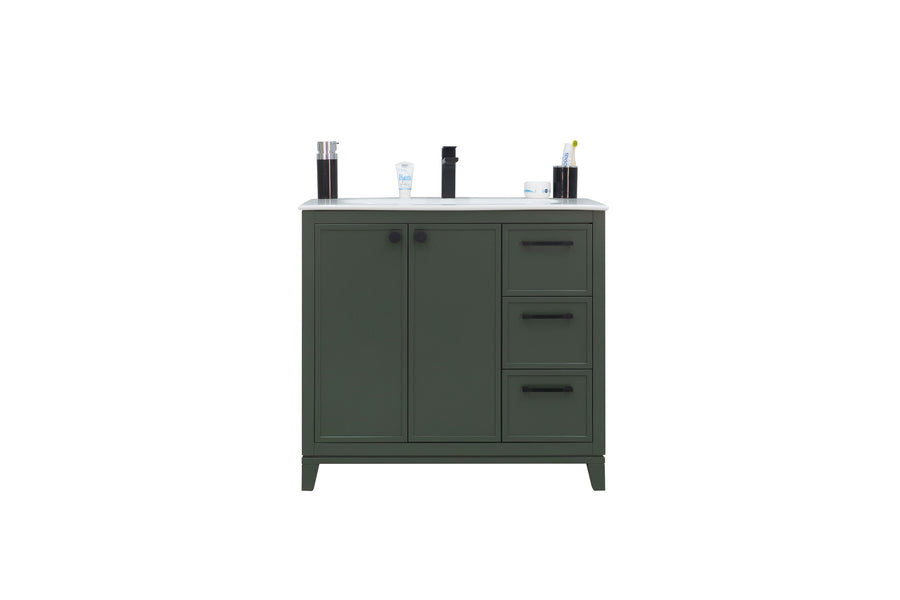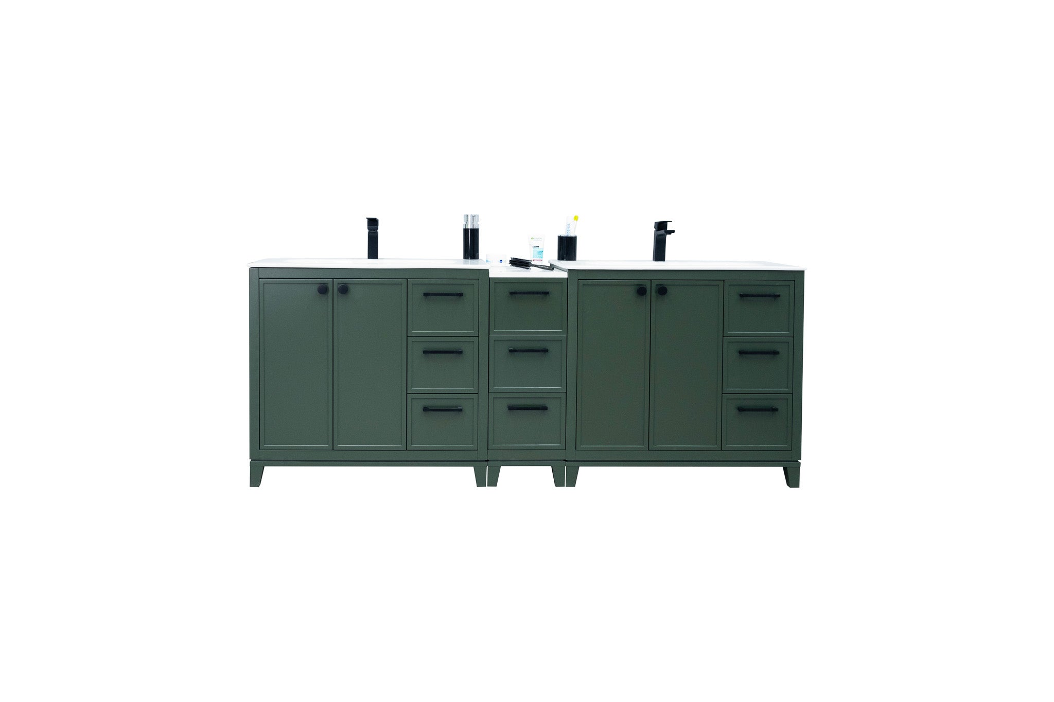Vanity is combined with two 36" vanities & 12" cabinet.