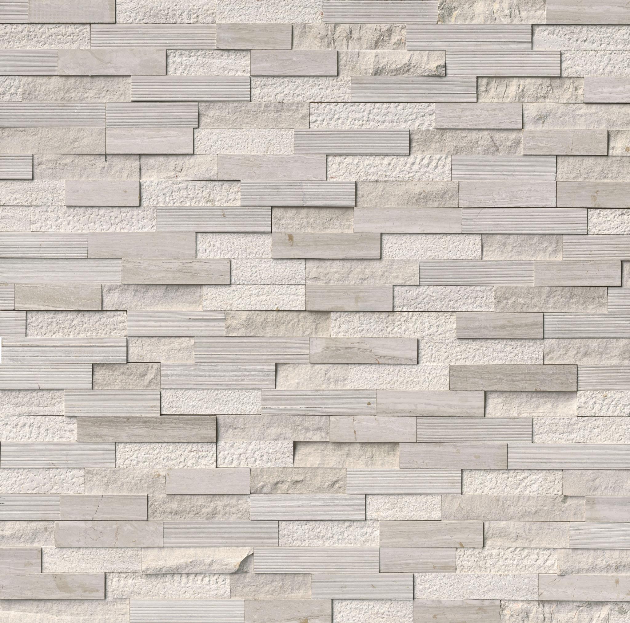 Landscape ledger panels feature striking and dynamic stone. This split face finish is natural and ideal for interior and exterior wall design projects. Accent a backsplash or planter wall with these snowy white panels. We recommend both interior and exterior applications in commercial and residential projects.