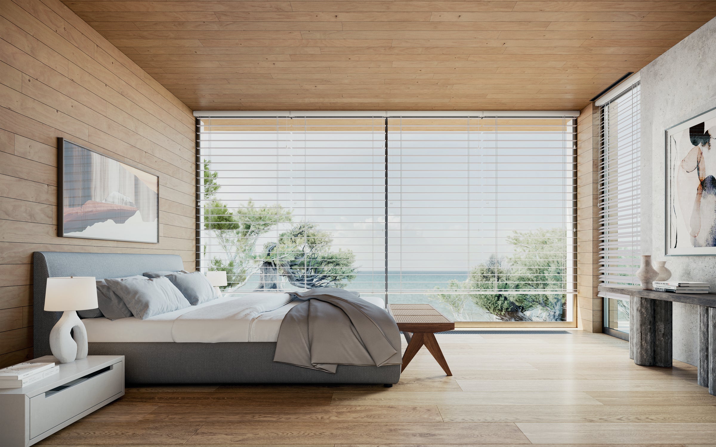 Streamline and declutter your interior with one of our sleekest window treatments. Modern Precious Metals® Aluminum Blinds offer maximum light control and are available in an array of slat sizes, colors and finishes, from matte to metallic to pearlescent hues. For high-traffic homes, few window treatments withstand daily wear and tear better than these blinds.