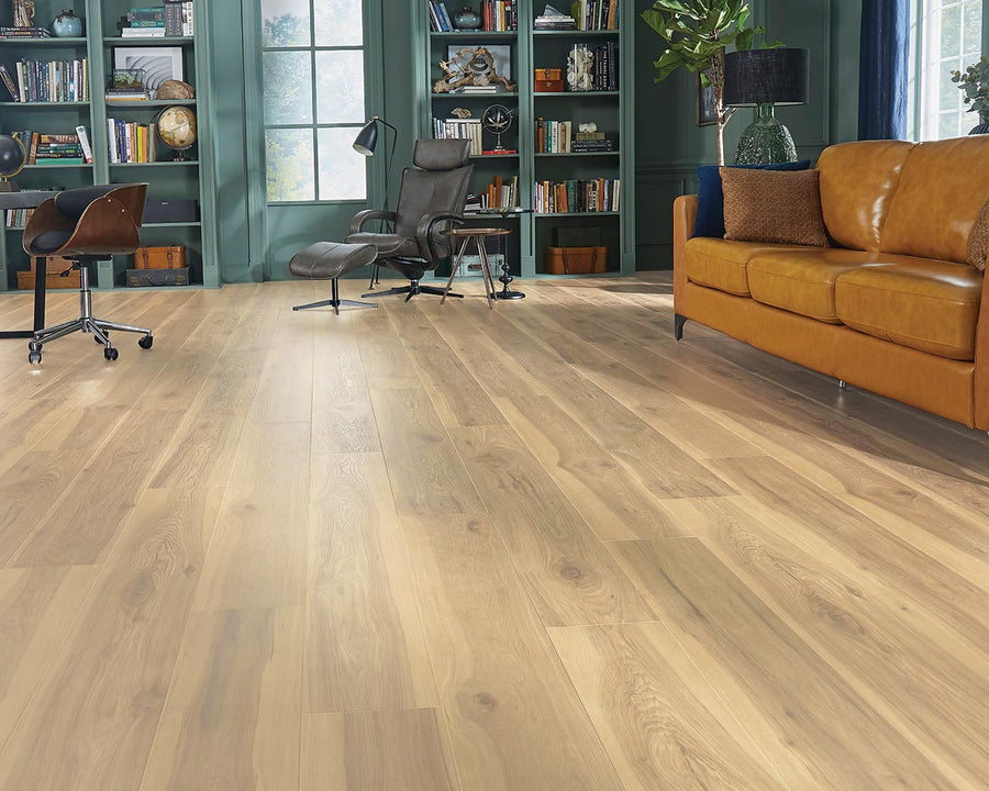 Everything about Pergo color, character variation, shading, and texture is designed to make a statement. The embossed in register (EIR) texture follows the relief and grain of the wood design and the Signature high-definition printing technology results in a hyper-realistic floor. Prestano offers beauty and performance with a waterproof system which allows you to wet mop and steam mop the flooring, thanks to the GenuEdge beveled edges and the Uniclic Locking system, which in unison, create a waterproof joint. A premium underpad is already attached for thermal insulation, cushioning and sound barrier.