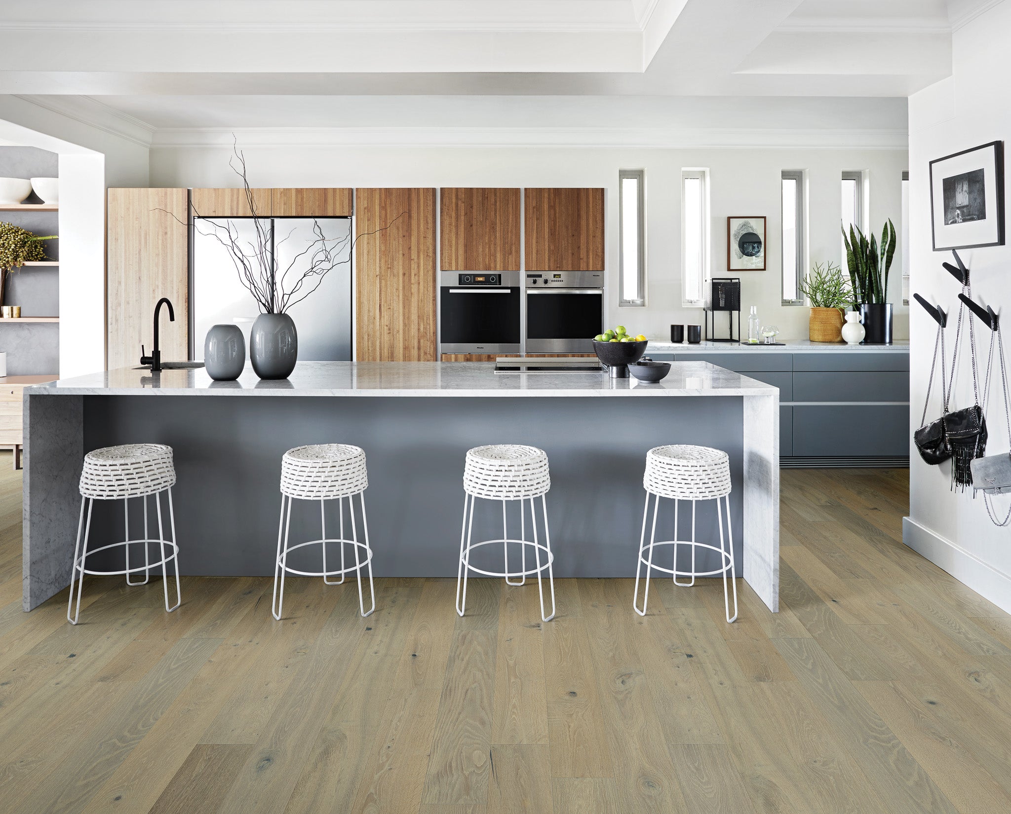 Indulge in luxury with our Provincetown 7 1/2" White Oak Engineered Hardwood. Made of European white oak, this sophisticated flooring is engineered for durability and elegance. With its unique grain pattern and high-quality construction, your home will exude an exclusive and refined atmosphere. Elevate your space today.