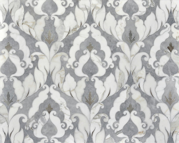 The Talya Collection is a refined study of designs using marble and stone, intertwining into lacework and modern geometries. The collection is formal and casual, elegant and understated, with its minimal palette of greys and ivories. This soothing palette has nuances that make it easy to work with, and fits easily into any traditional or modern environment. Applicable for floors and wall treatments, medium to heavy traffic and suitable for wet environments as master baths and kitchens.